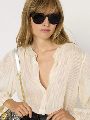 Agnella Ruffle Detail Long Sleeve Blouse, Ecru