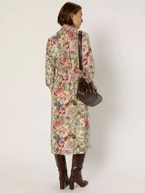 Lian Floral Three-Quarter Sleeve Collar Midi Shirt Dress