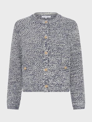 Leora Tweed Knit Cardigan, Navy