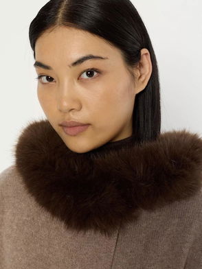 Elo Faux Fur Neck Pure Cashmere Cardigan, Beige