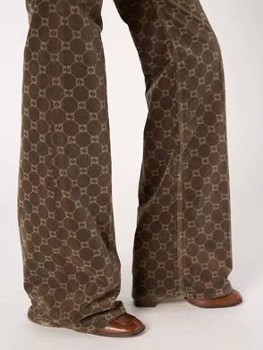 Anna Logo Print Flared Trousers, Coffee