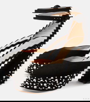 Embellished Suede Slingback Pumps