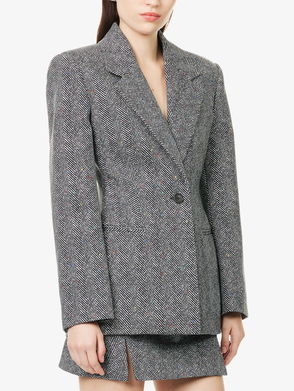 Herringbone-Print Notch-Lapels Cotton Jacket