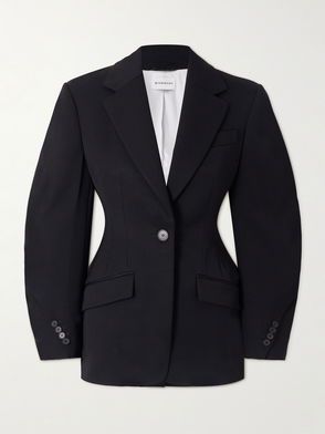Double-Breasted Faille-Trimmed Grain De Poudre Wool Blazer