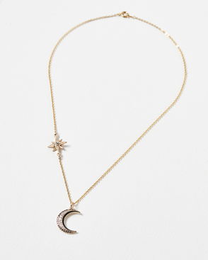 Twisted Bar Fan & Gem Detail Pendant Necklace