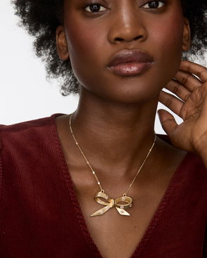 Holland Embellished Bow Gold Tone Pendant Necklace