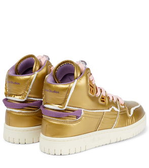 Florencia Lizard Embossed Lace Up Trainers, Gold
