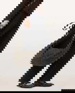 Tammila Leather Large Slouchy Tote Bag, Khaki