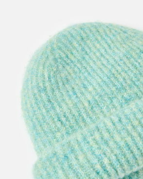 Green & Peach Striped Fluffy Ribbed Knitted Beanie Hat