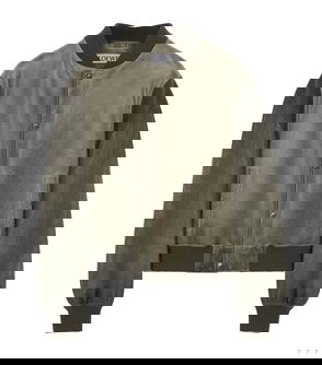 De-Bossed Logo Ribbed-Trims Leather Bomber Jacket
