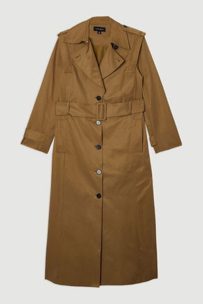 Strong Shoulder Belted Maxi Trench Coat
