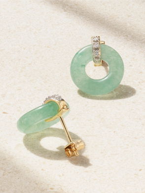 X Kate Young 18ct Yellow Gold Vermeil And Green Aventurine Hoop Earrings