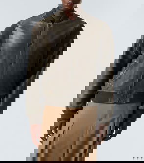 Relaxed-Fit High-Neck Leather Jacket