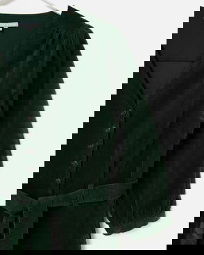 Green Corduroy V-Neck Tie Waist Jumpsuit