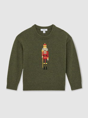 3-9 Yrs Wool-Blend Nutcracker Jumper In Green