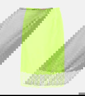 Green & White Daisy Jacquard Pleated Midi Skirt