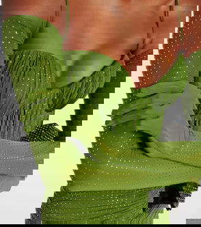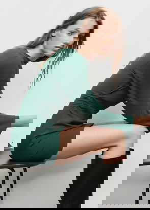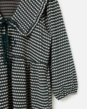 Dark Green Corduroy Embroidered Sleeve V-Neck Mini Dress