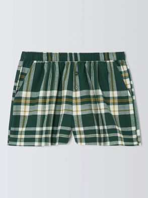 Plaid Check Brushed Cotton Pyjama Shorts, Green