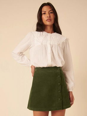 Dark Green Corduroy Heart Embroidered Mini Skirt
