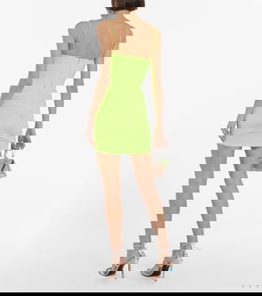 Organza Mini Skirt With Applique Flowers And Satin Lining In Light Khaki Green