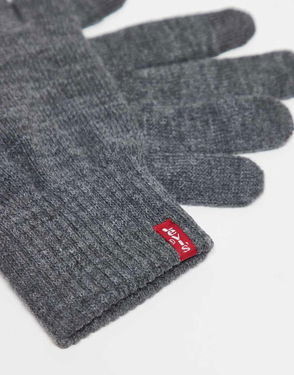 Red Tab Touch Screen Knit Gloves In Grey