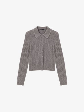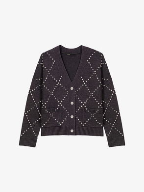 Rhinestone-Collar Slim-Fit Wool Cardigan