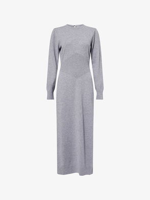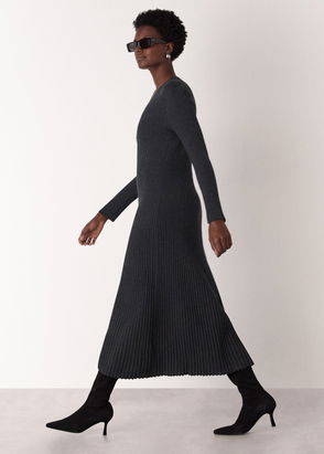 Dark Grey V Neck Cable Ribbed Knit Dress