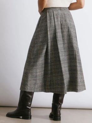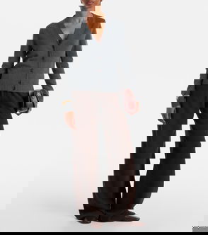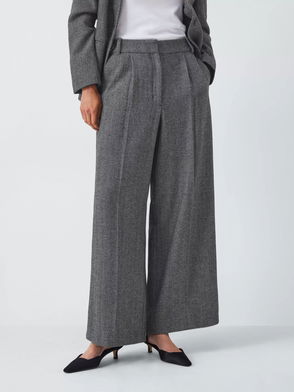 Striped Twill Wool Blend Pleat Wide Leg Trousers, Grey