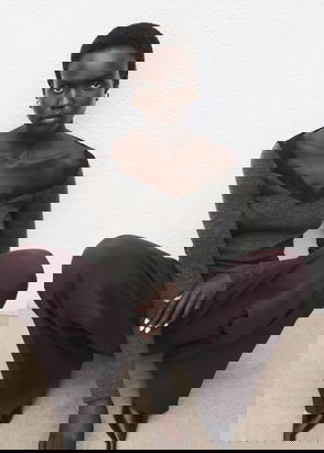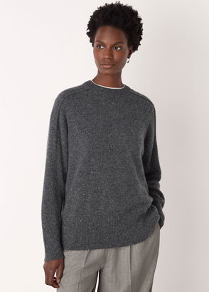 Dark Grey Cashmere Fleck Seam Neck Knit