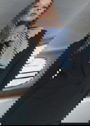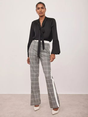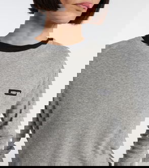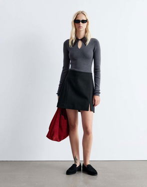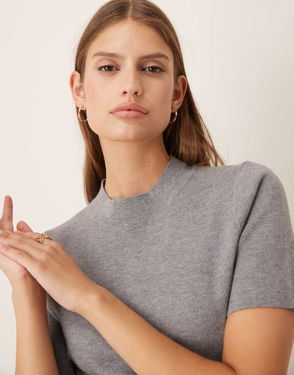 Wool Blend Knitted Top In Grey With Contrast Keyhole Collar