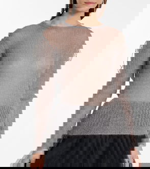 Alpaca Knitted Cardigan With Short Sleeves In Light Grey