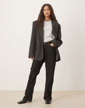 Co-ord Wool Blend Blazer With Cinched Waist In Grey Melange