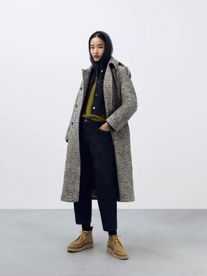 Textured Herringbone Wool Blend Trench Coat, Multi