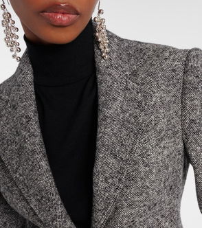 Faux-Crystal Buttons Puff-Sleeve Scuba Blazer