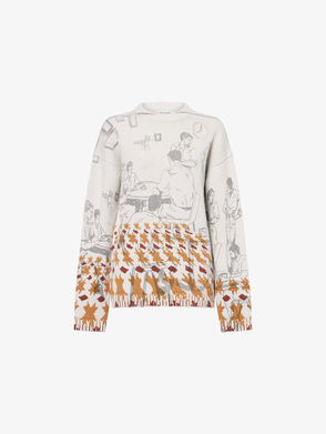 Graphic-Print Long-Sleeve Alpaca-Wool Blend Jumper