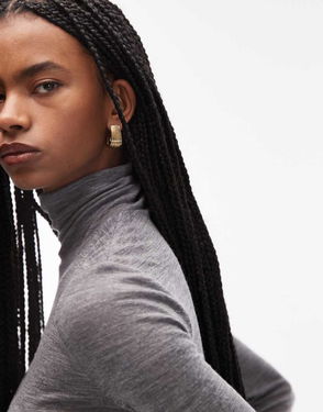 Merino Wool Knitted Semi Sheer Turtle Neck Top In Grey