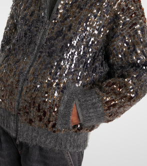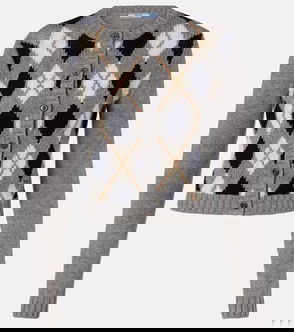 Rhinestone-Collar Slim-Fit Wool Cardigan