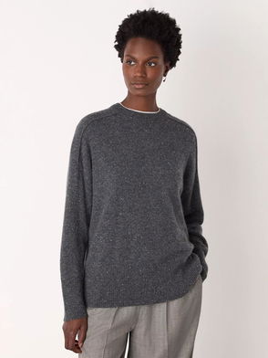 Fleck Seam Pure Cashmere Jumper, Dark Grey