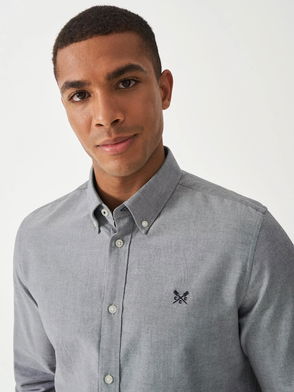 Premium Check Oxford Shirt In Charcoal Marl Micro Grid