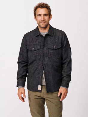 Bushfield Wool Regular Fit Check Overshirt, Charcoal