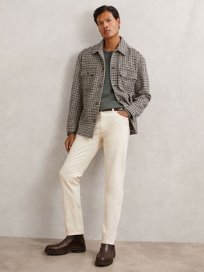Wool-Blend Houndstooth-Check Overshirt In Grey