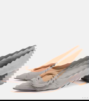 Leather Slingback Wedge Pump Heel In Grey Snake Print
