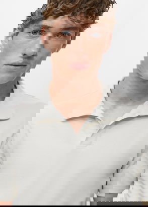 Azores Cotton Regular Fit Open Neck Polo Shirt, Dark Grey