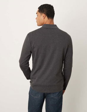 Long Sleeve Polo Top In Charcoal