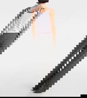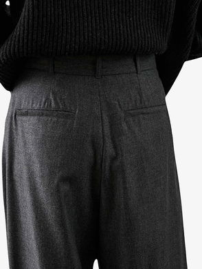 Striped Twill Wool Blend Pleat Wide Leg Trousers, Grey