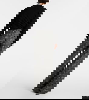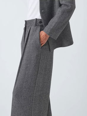 Belle Herringbone Tweed Trousers, Grey/Multi