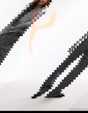Wool Flannel Straight Leg Trousers With Elasticated Waist In Grey