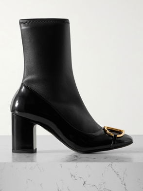 Horsebit-Embellished Patent-Leather Ankle Boots