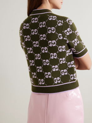 Knitted-Logo V-Neck Wool-Cashmere Blend Cardigan