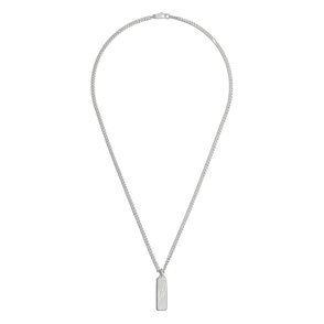 Tag Necklace In Sterling Silver And Black Rubberized Tag _length 50/55 Cm